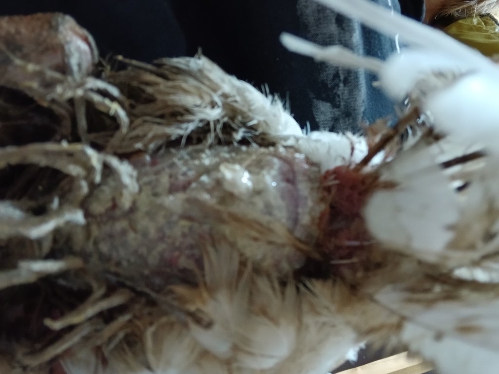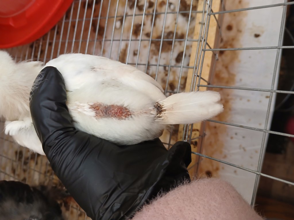 Здравствуйте, у одной из куриц заметила белые выделения. Отмыла, намазала левомеколью, сегодня опять все так же. Подскажите от чего это? Как можно пролечить?