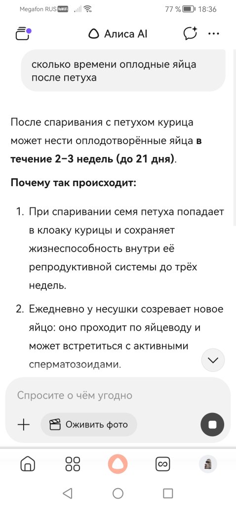 Объясняю без романтики. В первые 7-10 дней оплодотворение может держаться на уровне 80-90%, если петух был активный и молодой. Дальше идёт РЕЗКИЙ ОБВАЛ. К концу второй недели вы получите максимум 20-30% оплода, а качество эмбрионов оставляет желать лучшего (замершая инкубация, уродства, слабый вывод). На третьей неделе попадаются единичные оплодотворенные яйца, чаще у старых, медлительных пород (брама, кохинхин) или у кур, которые просто реже неслись. Там в яйцеводе микрофлора поспокойнее, среда не такая агрессивная.